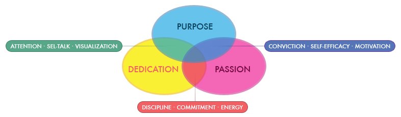 Purpose, dedication and passion are interrelated and dependent upon one another. They form the basis for development in any area of our lives. Fulfillment resulting from the interaction of this triad is how we measure, confirm and improve performance. Fulfillment reinforces progress.